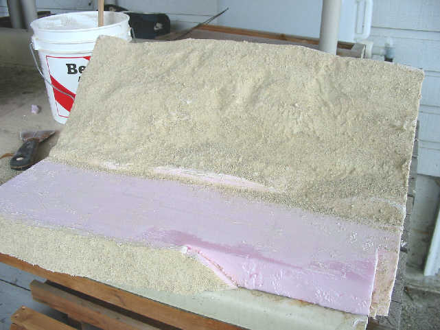 Sand has been liberally applied to the foam base of our diorama